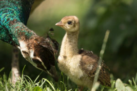 Troisième rôle et non des moindres: il donne le sourire aux gens. Les enfants du village viennent le voir, et Georges vient les voir. Et ils s’esclaffent quand il pousse ses « léons ». Et ils repartent avec des plumes à la main, le visage radieux. Les automobilistes aussi ralentissent et se penchent à leur portière tout sourire quand d’aventure le paon, toujours très curieux, se hasarde au delà des limites de son territoire.